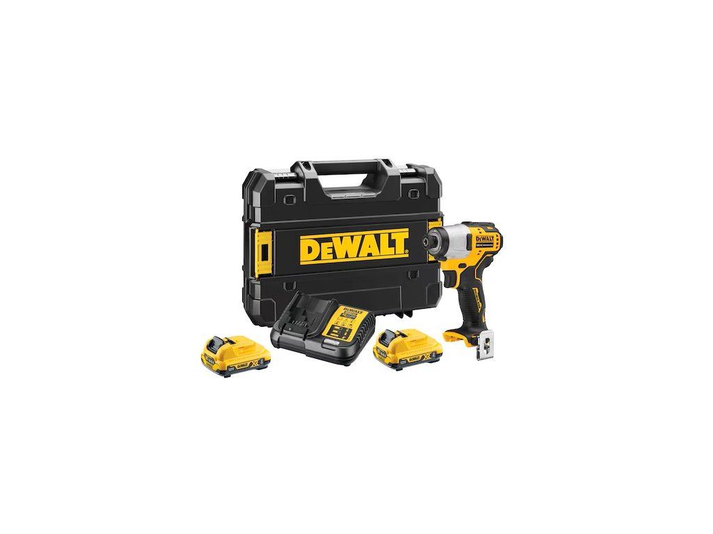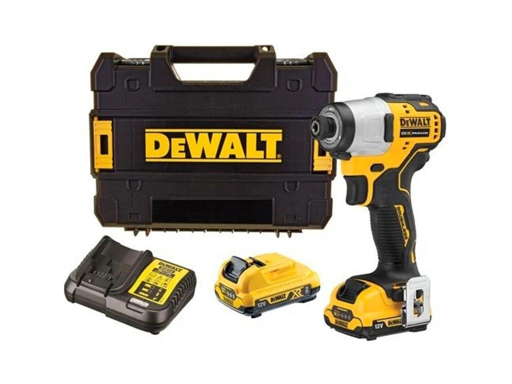 DeWALT DCF801D2-QW 12V BEZUHLÍKOVÝ rázový utahovák 2 x akumulátor 2,0 Ah, 0-1000/ 0-1500 / 0-2600 ot./min, uchycení 1/4"