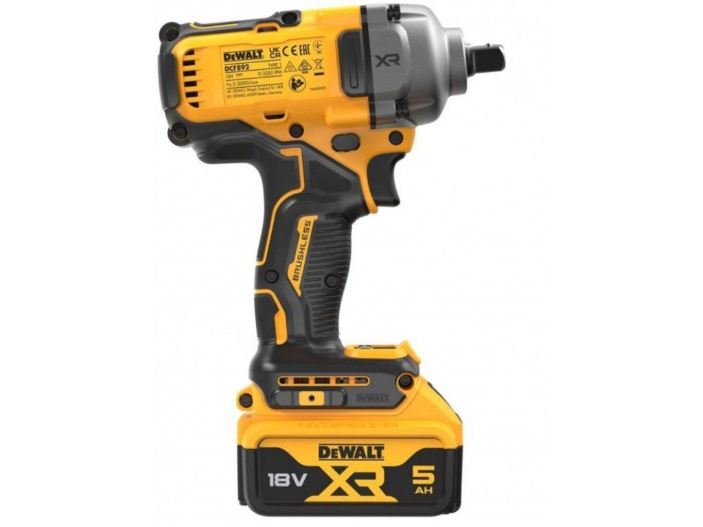 DeWALT DCF892P2T-QW 18V rázový utahovák 1/2" s pojistnou kuličkou, 2 x aku 5,0 Ah, kroutící moment 813 Nm, v kufru Tstak