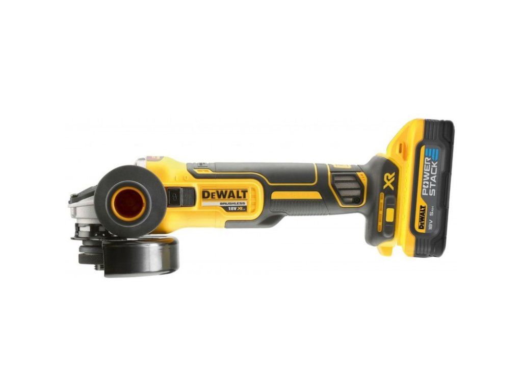 DeWALT DCG405H2T-QW 18 V XR BEZUHLÍKOVÁ úhlová bruska 125 mm / 9 000 ot./min / spojka a brzda / posuvný spinač / 2 x POWERATACK 5,0 Ah / kufr Tstak