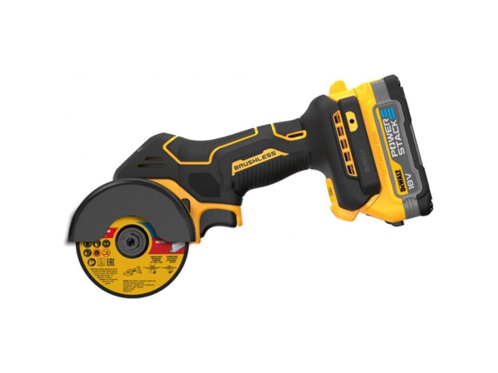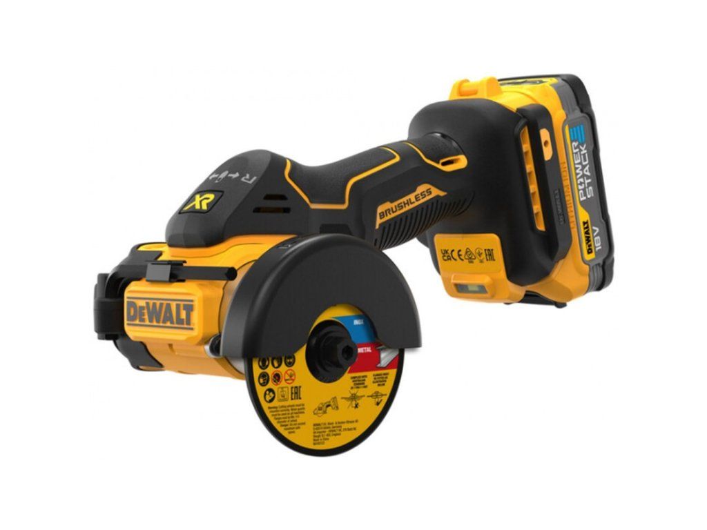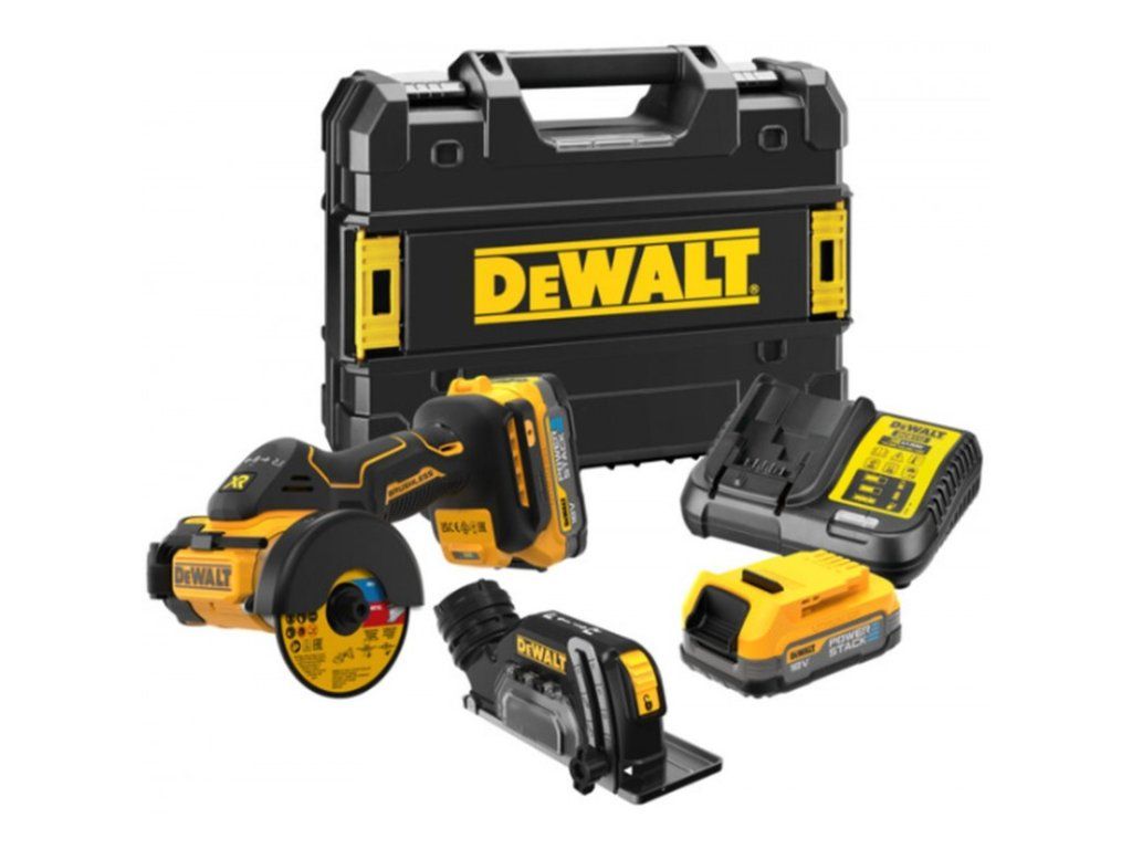 DeWALT DCS438E2T-QW 18V univerzální řezačka 2 x aku POWERSTACK 1,7 Ah, kotouč na řezání kovů, diamantový kotouč na obklady, diamantový multimateriálový kotouč, Kufr Tstak