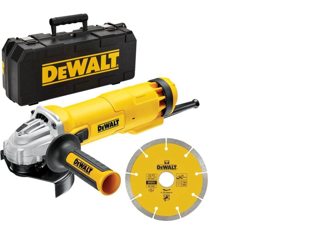 DeWALT DWE4217KD-QS 125 mm, 1200 W, 11000 ot/min, 2,3 kg, beznapěťový spínač, kufr, diamantový kotouč