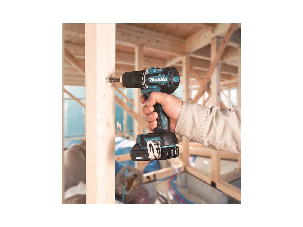 - Vrtací šroubovák s bezuhlíkovým motorem umožňujícím delší práci na jedno nabití akumulátoru
