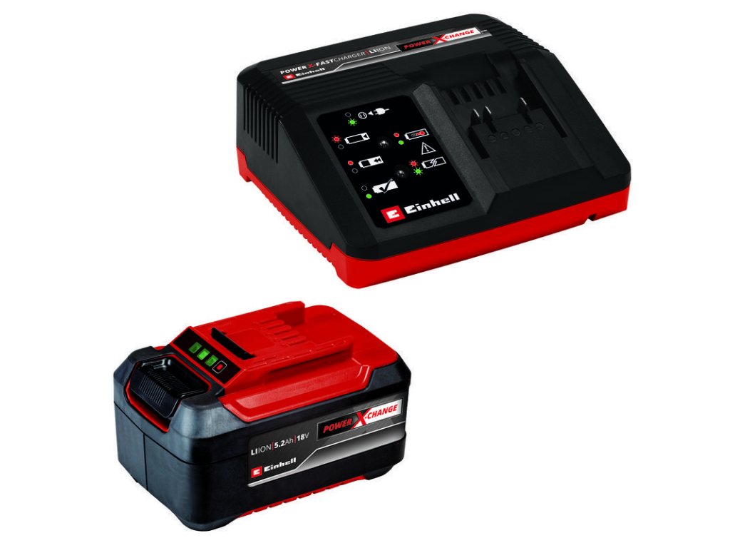 Startovací sada Einhell 18V 5,2Ah PXC je ideálním základem pro vytvoření nebo rozšíření řady Power X-Change ve vaší domácnosti. Startovací sada s 18V 5,2 Ah dobíjecí baterií Power X-Change PLUS a vysokorychlostní nabíječkou baterií je členem multifunkčního a neomezeně kombinovatelného systému dobíjecích baterií Power X-Change od společnosti Einhell. Univerzálně použitelné baterie Power X-Change poskytují energii a výkon všem akumulátorovým nástrojům z rodiny produktů v dílně i zahradě. Nabíječky ze série lze také univerzálně použít pro každou dobíjecí baterii PXC. Výhody pro zákazníka jsou zřejmé: Jedna dobíjecí baterie a jedna nabíječka pro všechny nástroje nejen šetří značné náklady na nákup, univerzální použití také pomáhá chránit životní prostředí a poskytuje flexibilitu jak v dílně tak i na zahradě. Rovněž eliminuje nepořádek a chaos s různými dobíjecími bateriemi a nabíječkami pro každý samostatný nástroj. Výrobek je vhodný i pro náročnější použití. Vysoce kvalitní dobíjecí baterie odolává paměťovému efektu a samovybíjení běžně spojenému s bateriemi a dodává konstantní vysoký výkon. 18 V 5,2 Ah Power X-Change je ideální základní dobíjecí baterie z rodiny Power X-Change a je také vhodná pro použití TWIN-PACK v zařízeních na 36 V . Procesorem řízený aktivní systém baterie BMS má mikroprocesor pro trvalé sledování parametrů baterie. Tím je zajištěna maximální bezpečnost, optimální výkon zařízení, maximální doba provozu a maximální životnost. Aktuální úroveň nabití lze zkontrolovat na 3stupňovém LED displeji. Kryt je navržen tak, aby byl odolný proti prachu, korozi a mechanickým vlivům. Pogumovaný povrch poskytuje baterii vysokou úroveň ochrany proti nárazu a dobrou přilnavost. K dispozici je integrované tlačítko, které umožňuje snadné vyjmutí baterie z každého nástroje. Vysokorychlostní 4 Amp technologie nabíjení znamená krátké doby nabíjení a pro optimální nabíjení a maximální bezpečnost je baterie trvale sledována inteligentním systémem správy nabíjení. Režim obnovení umožňuje znovu aktivovat hluboce vybité baterie. Všechny aktuální informace poskytuje 6stupňový indikátor LED úrovně nabití. Pro snadné zavěšení na zeď jsou zde integrovaná závěsná oka.