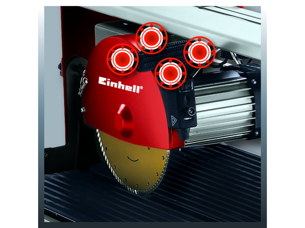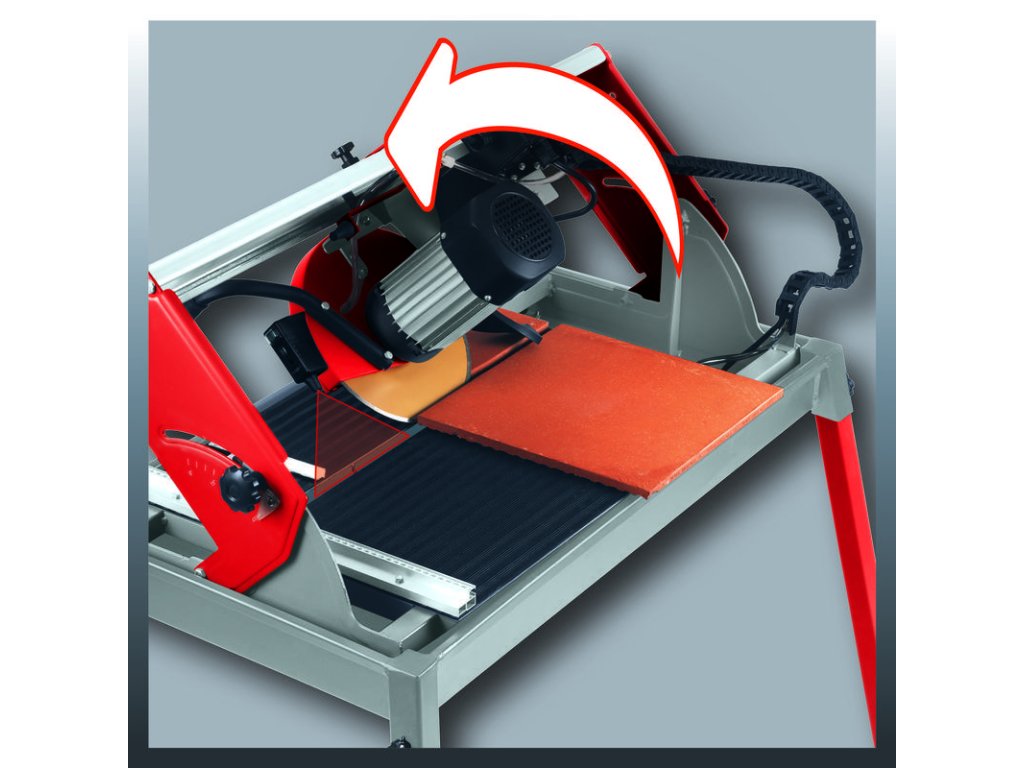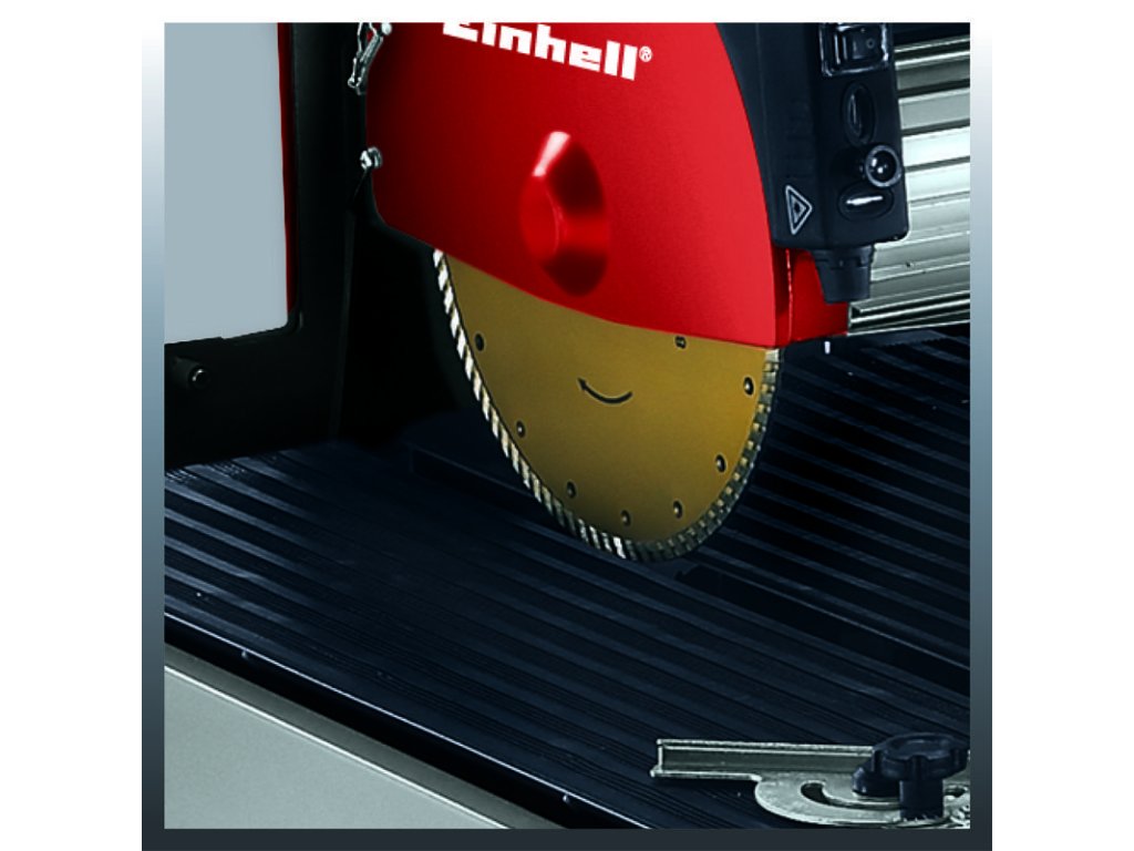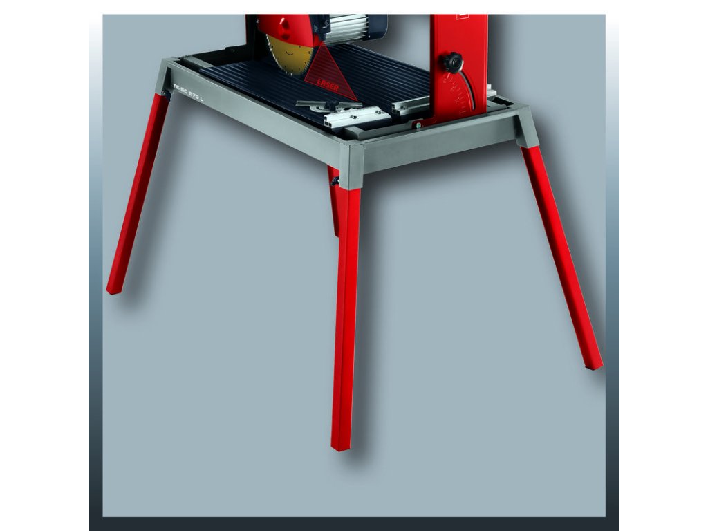 Řezačka kamene TE-SC 570 L je spolehlivý a vysoce kvalitní přístroj, s jehož pomocí lze rychle a přesně řezat kamenné a betonové desky, cihly i obklady a dlaždice. Její robustní motor poskytuje prostřednictvím 1 500 W dostatečný výkon, aby turbo-diamantový řezací kotouč o průměru 250 mm mohl plynule procházet tvrdými materiály jako jsou žula a mramor. Řezačka TE-SC 570 L disponuje hlavou motoru plynule výkyvnou od 0° do 45° s posuvem motoru vybaveným 4 kuličkovými ložisky a délkou posuvu 570 mm. Díky úhlově přesně nastavitelnému hliníkovému úhlovému dorazu, který je odolný proti zkrutu, lze snadno provádět pokosové, dvojité pokosové nebo jolly řezy. Pohyblivé uložení hlavy motoru navíc umožňuje provádění ponorných řezů. Velký pracovní stůl s protiskluzovou gumovou úpravou spočívá na robustním podstavci. Její odnímatelný laser usnadňuje přesné řezání vyznačením čáry řezu na obrobku. Vodu pro chlazení řezacího kotouče dopravuje stroj z masivní vany pro zachycení vody vyrobené z ocelového plechu pomocí integrovaného vodního čerpadla.